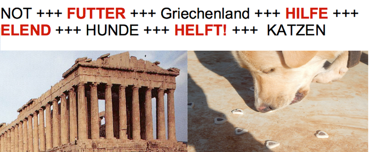 Im Juli 2015, als es hieß, die griechischen Banken würden schließen und es würde nur noch ein festgesetzter Betrag täglich ausgezahlt werden, dachten wir an die vielen TierschützerInnen in Griechenland, die es jetzt noch viel schwieriger hätten, Futter für ihre betreuten Tiere zu beschaffen.